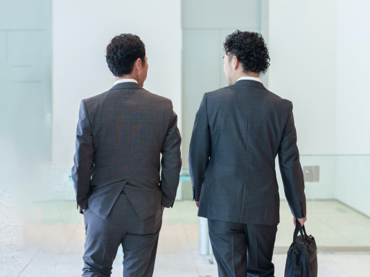 pickup!現場の担当者と営業施策の説明や広告物の打ち合わせ。ウェブでも打ち合わせが可能だが、自身の考えが細部まで伝わるように、できる限り足を運び顔を合わせて話をするようにしている。